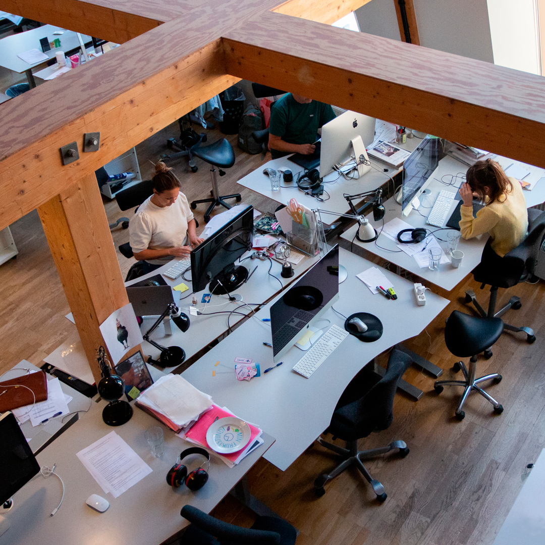 Här arbetar du bland kreativa människor i en ljus och bekväm miljö. Vi som sitter här idag arbetar bland annat med reklam, design, foto och web. Våra lokaler ligger mitt i Göteborg med flertalet lunchrestauranger precis utanför porten. Kontoret ligger på översta våningen med terass och utsikt över staden. Du får tillgång till alla gemensamma utrymmen som mötesrum, kök, lunchrum och terrass.
